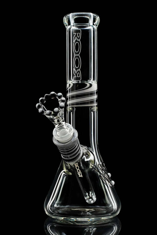 ROOR® Classic 4mm 10" Beaker with Black & White Crown with Black & White Outline Decal Height: Approx. 10”Body Color: Clear Perc: NoneDiame...